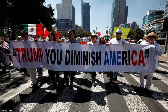 In the face of Trump’s anti-Mexico rhetoric, 20,000 Mexicans took to the streets of the capital, Mexico city in defiance at the President’s hostility towards them. Most of all, they were protesting against his plans for a border wall and increased deportations.