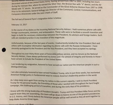 Last night, Monday February 13, embattled White House national security adviser Michael Flynn resigned.