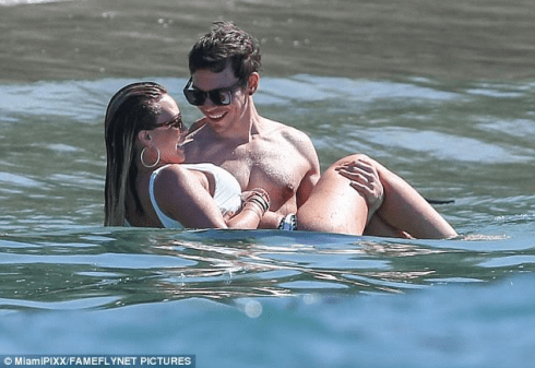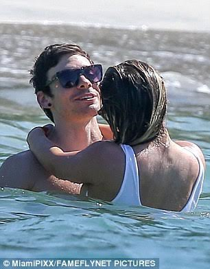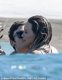 The singer and former child star exchanged a few kisses with Matthew as he carried her in his arms while threading water.
