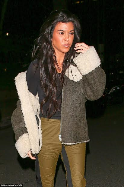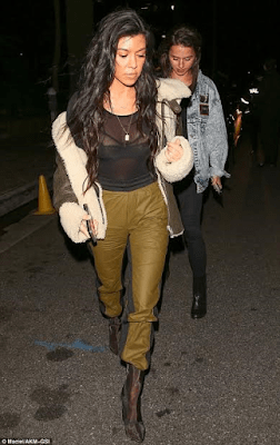 For the religious outing, mother-of-three, Kourtney, wore a sheer top that showed off her black bra beneath. She also had on a leather aviator jacket on top of her blouse but made no effort to try to conceal her bra with the jacket which was left hanging open.