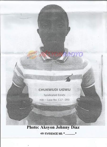 The NBI first arrested Filipino Rosalyn Ibarra on Feb. 21 and then Malaysian nationals Sitti Faridah Binti Abdul Hamid and Ishamah Binti Sheck Dawood, and Nigerian national Francis Onyebuchi Amadi in the second operation on Feb. 23. Amadi is the common-law husband of Ibarra. Also on Feb. 23, NBI agents arrested Nigerian national Chukwudi Ugwu.