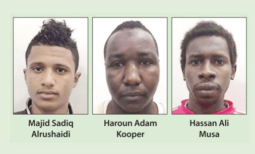 The alleged attackers were identified as Haroun Adam Kooper, a Nigerian and holder of a residency card, Majid Sadiq Alrushaidi, an 18-year-old Saudi national and the alleged assailant who ran over the policeman; Husain Abdulkareem, a 25-year-old Chadian national, who holds no personal identification card; Haroun Adam Kooper, and Yacoub Ahmad Mohammad Abdulfatah, a 28-year-old Yemeni national, who holds a visitor’s card.