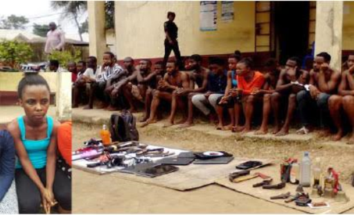 The Cross River State Police Commandon Friday paraded various robbery, rape, kidnapping, murder, cultism suspects including a woman identified as Hope Usang, 25, (inset) who leases arms to suspected robbers in Calabar