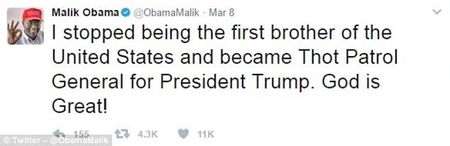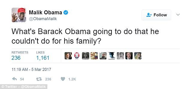 Malik also tweeted his support for Trump. Since before the election, he’s been very vocal about his support for the new president, saying Obama had done nothing for his Kenyan family so doesn’t deserve his support and this got him an invitation from Trump to attend the October 19 debate against Hillary Clinton in Las Vegas where he got to meet and take a photo with Trump’s adviser, Kellyanne Conway.
