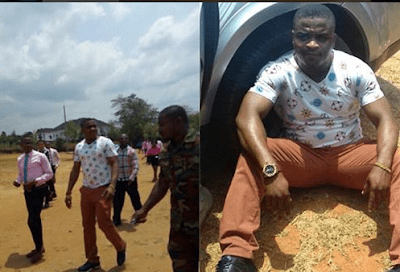 Angered by the threat, he went to the campus today to teach him a lesson. On getting there, he called the supposed boyfriend, but coincidentally, an innocent student was also receiving a call close by.