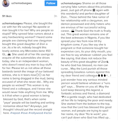 Controversial Nollywood actor, Uche Maduagwu, has slammed those accusing nollywood actress, Daniella Okeke of having an affair with the founder of Omega Power Ministries, Apostle Suleiman, an affair they say reportedly got her a $76,000 brand-new Mercedes-Benz 450 GL.