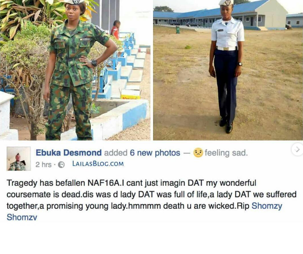Uncategorized Nigerian Airforce Officer Allegedly Shots Female Colleague Dead Date: March 12, 2017Author: daybreaknewonline 0 Comments A Facebook user Ebuka Desmond Took to the social media platform to share the sad news. Read his post below: Sad. may her soul rest in peace Share this: Share on X (Opens in new window) X Share on Facebook (Opens in new window) Facebook Share on LinkedIn (Opens in new window) LinkedIn Share on Pinterest (Opens in new window) Pinterest Share on Telegram (Opens in new window) Telegram Share on WhatsApp (Opens in new window) WhatsApp Email a link to a friend (Opens in new window) Email Like Loading... Related
