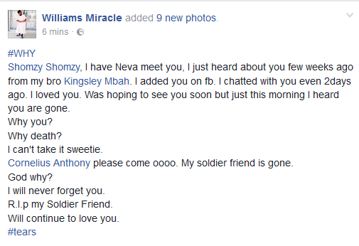 The details are still very sketchy but according to many reports, it has been said that, the lady, Oladipupo Solape a.k.a Shomzy Shomzy, a young Nigerian Navy personnel was this morning shot dead by her boyfriend who also happens to be her colleague. Like I said the details are still very sketchy but her colleagues, friends (even those who haven’t met her in person) have all been dropping messages on Facebook mourning her death. Indeed from the photos she was a great happy lady. More photos below..