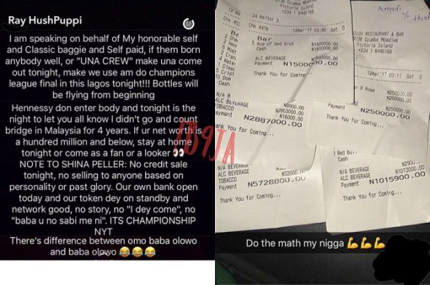 “I am speaking on behalf of my honorable self and classic baggie and self paid, if them born anybody well, or ‘UNA CREW’ make unannounced come out tonight, make we use am do champions league final in this lagos tonight!!! Bottles will be flying from the beginning.