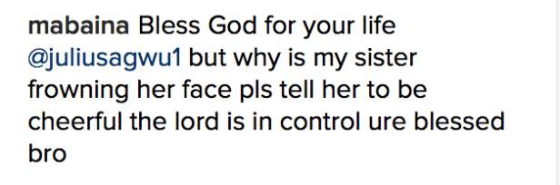 Fans read deep meaning into Julius wife’s frown and sought for answers but Ibiere came swinging.