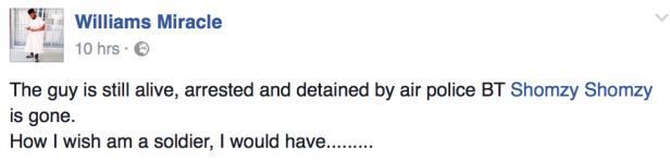 Laila’s Blog has been told that Kalu is still alive. The victim’s friends say Kalu did not killh himself, rather he has been arrested and detained by Air Force police.