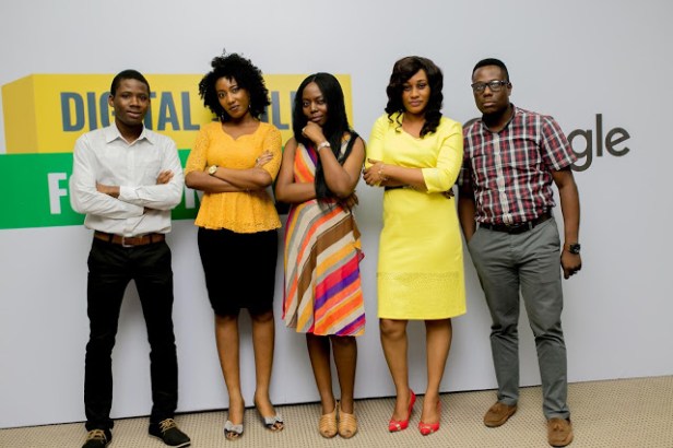 L – R: Oluwamayowa Oshidero (Ibadan), Vanessa Morris (Lagos), Tele Williams-Aina (Lagos), Vanessa Mbaramah (Coutonu) , Segun Abodunrin (Lagos), beneficiaries of the Google Digital Skills for Africa Training at the Google Digital Skills for Africa 1M Milestone Announcement that held recently at The George, Lagos.