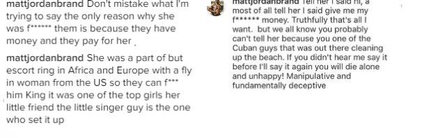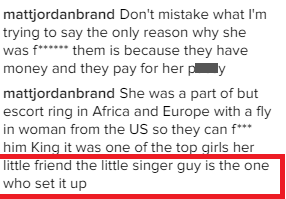 He also accused her of being part of an escort ring in Africa and Europe and says she was pimped by her little singer friend who is obviously Dbanj…
