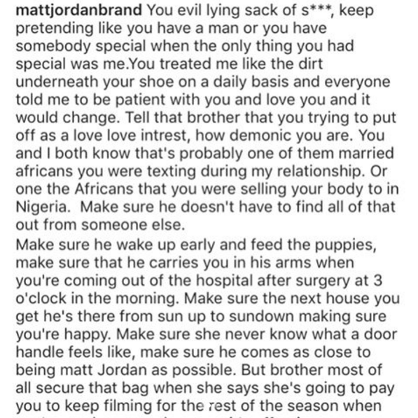 Real Housewives of Atlanta star, Kenya Moore has been called out by her fitness trainer ex, Matt Jordan. He claims he was not paid after featuring in a season of the reality show and playing her love interest. He also has some words of advise for her new love interest who he claims is a married Nigerian man.