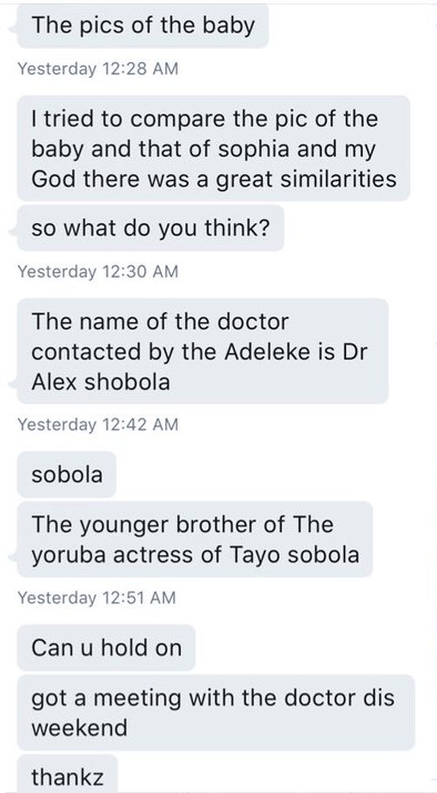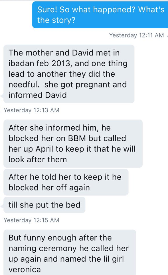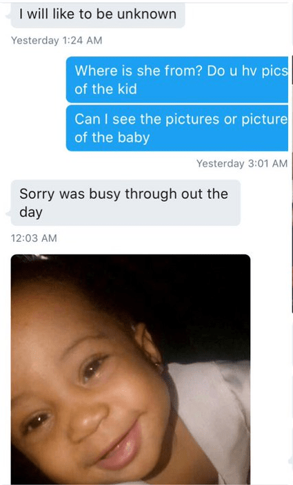 A lady sent messages to @SubDeliveryMan on Twitter with photos of the little girl who bears a striking resemblance to his daughter, Imade..
