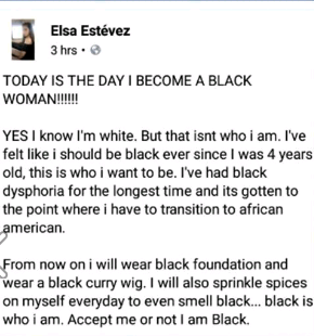 A White Spanish woman, Elsa Estevez says she has started her transition to become a black woman as she has always wanted to be.