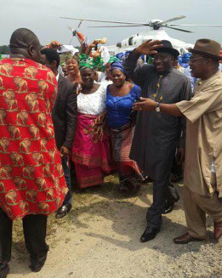 Ex-President Goodluck Jonathan and his wife, Patience Jonathan, have arrived Okrika, Rivers state for the Chieftaincy Installation of Patience Jonathan’s brother, into the Okrika Divisional Council. The women of the town in Rivers State, were at the arrival ground to welcome the ex-President of Nigeria and his wife.
