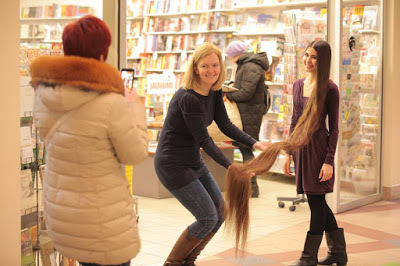 The lengthy locks weigh about 2 kilograms, as much as the family cat, Aliia says.