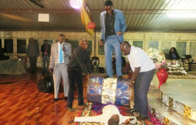 Please meet Prophet Wiriranayi Gomani of Jubilee City International Church in Zimbabwe, who is reportedly doing wonders by using a drum to roll over congregants or walk on them to cast out demons.