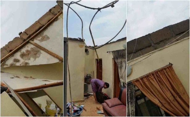 A family in Lagos State, was rendered homeless on Friday after a heavy wind that blew, took off the roof of the house. The incident which left sympathizers calling for an investigation of materials used in building the house, destroyed some properties too.