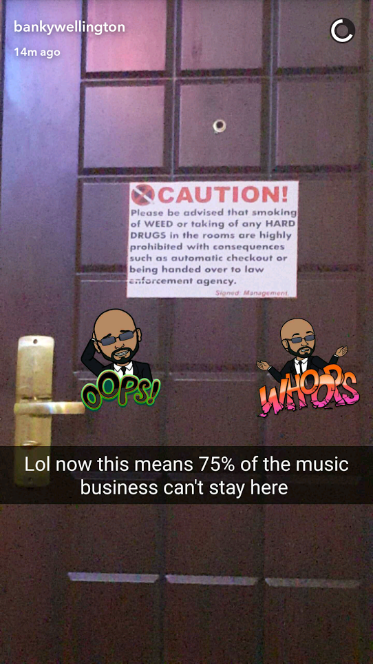 Uncategorized ‘At least 75% of the people in the music business smoke weed or take hard drugs’ – BankyW Date: March 20, 2017Author: daybreaknewonline 0 Comments This is according to BankyW, who of course plays an important role in the Nigerian music industry,. He shared this after seeing a notice on a hotel room in Benin. Share this: Share on X (Opens in new window) X Share on Facebook (Opens in new window) Facebook Share on LinkedIn (Opens in new window) LinkedIn Share on Pinterest (Opens in new window) Pinterest Share on Telegram (Opens in new window) Telegram Share on WhatsApp (Opens in new window) WhatsApp Email a link to a friend (Opens in new window) Email Like Loading... Related