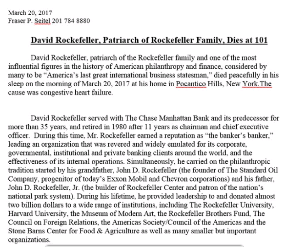 Read the statement from the The Rockefeller Foundation confirming his death below…