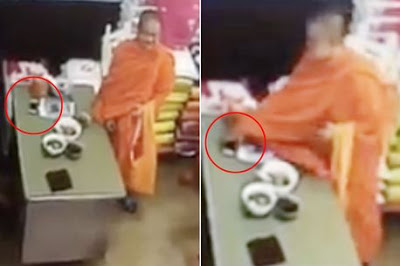 Two men dressed up as Buddhist monks have used their disguise to steal a mobile phone. The pair walked into a rice shop in southern Thailand decked out in their orange robes and asked to speak to the owner.