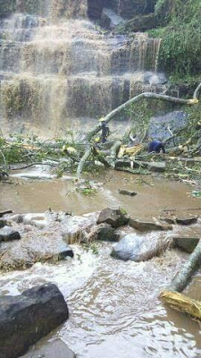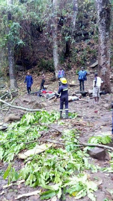 The victims, who are mostly senior high school students, were on an excursion and swimming beneath the fall when a rainstorm accompanied by a strong wind and thunder forced the tree to fall over them.