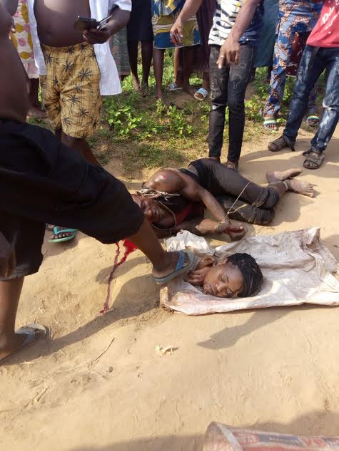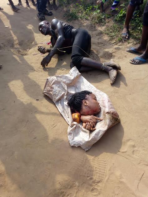 At about 4pm on Sunday March 19th, a middle aged man was caught with the head and hands of an unidentified lady at Muwo axis in Ikoga Badagry. According to a resident of the area, the culprit had always been seen walking around the neighborhood holding a sack with blood dripping from it. Whenever he’s confronted and asked what’s inside the sack he tells them it’s bush meat not until yesterday when he was busted. The photos are very gory. *viewer discretion advised*