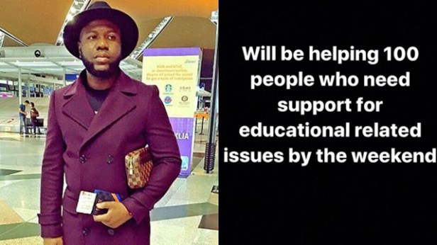 Malaysia-based Nigerian big boy, Hushpuppi last week made a post about supporting 100 people with educational related issues.