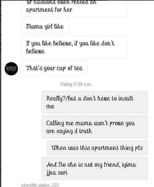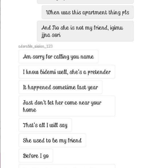 Uncategorized Nollywood Actress Bose Alao Shares DM Of Lady Saying Bidemi Kosoko Is Sleeping With Her Husband Date: March 21, 2017Author: daybreaknewonline 0 Comments Nollywood actress, Bose Alao, took to IG to share direct messages she received from a lady who claims her footballer husband is cheating on her with fellow actress, Bidemi Kosoko. Read messages below: Share this: Share on X (Opens in new window) X Share on Facebook (Opens in new window) Facebook Share on LinkedIn (Opens in new window) LinkedIn Share on Pinterest (Opens in new window) Pinterest Share on Telegram (Opens in new window) Telegram Share on WhatsApp (Opens in new window) WhatsApp Email a link to a friend (Opens in new window) Email Like Loading... Related