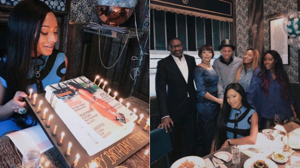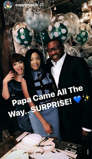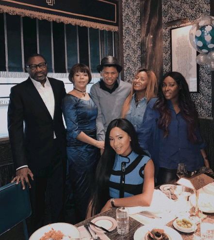 Temi’s dad, billionaire Femi Otedola and his wife, Nana with their disc jockey daughter, Ifeoluwa Cuppy Otedola were on hand to celebrate with the stunning fashion enthusiast.