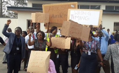 On Thursday, the workers barricaded Arik Air’s office at Murtala Muhammed International Airport, Lagos.