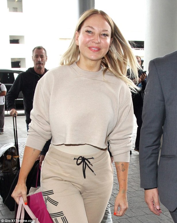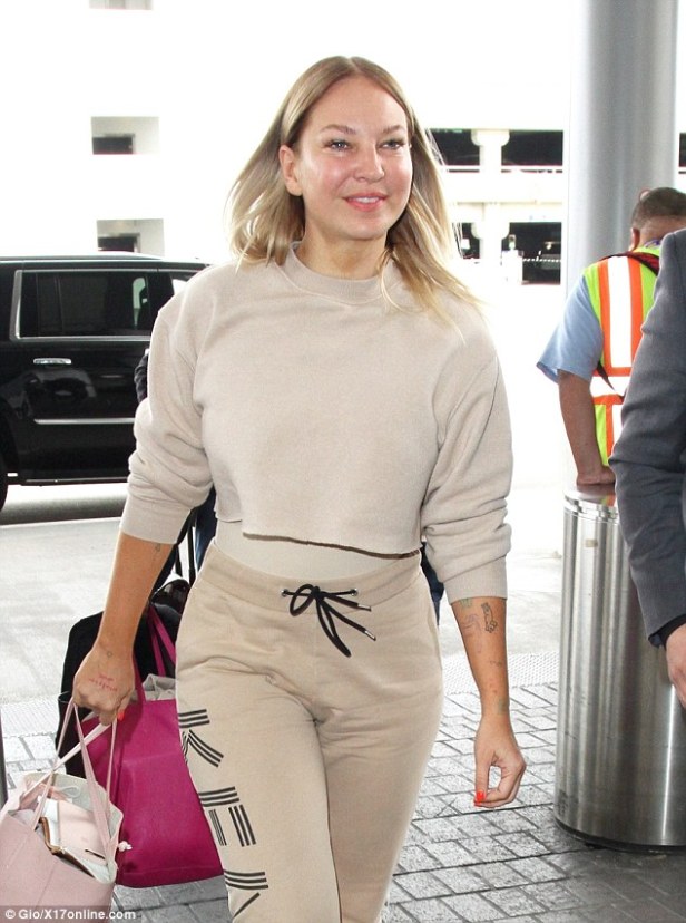 The Australian singer, 41, was a delight to the eye as she strutted her stuff at the airport makeup free.