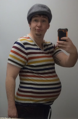 And while Chris started to experience the physical signs of pregnancy – he was constantly sick and his belly and breasts grew – his changing hormones strangely made his natural goatee beard grow thicker and more prominent.