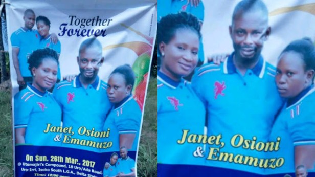 Uncategorized See wedding banner of man set to wed two women in Delta State on Sunday Date: March 24, 2017Author: daybreaknewonline 0 Comments Instagram user, Ireh Tega who spotted the banner shared it and wrote; “When I see am I fear. #onlyinisoko #onlyindelta” Share this: Share on X (Opens in new window) X Share on Facebook (Opens in new window) Facebook Share on LinkedIn (Opens in new window) LinkedIn Share on Pinterest (Opens in new window) Pinterest Share on Telegram (Opens in new window) Telegram Share on WhatsApp (Opens in new window) WhatsApp Email a link to a friend (Opens in new window) Email Like Loading... Related