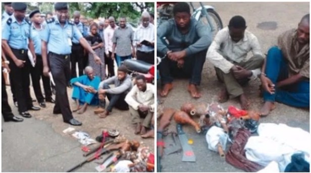 The police chief said items recovered from the suspects include: headless body of the deceased, heart and wrists. Other items are one cut-to-size single barrel gun, two long single barrel gun, axe, three knife, N40, 000 and charms. He said that the suspects would be arraigned in court after police investigations.