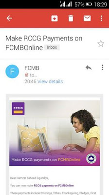 “I got an email alert announcing and directive on how to pay for RCCG offering, tithe etc online with FCMB mobile application, How many church have such package?”