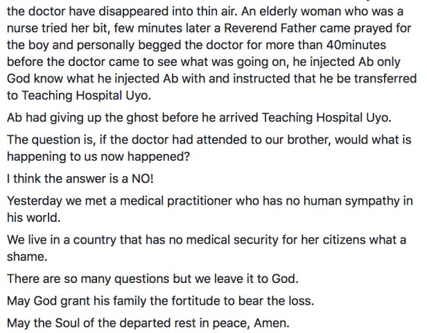 Ab had given up the ghost before he arrived Teaching Hospital Uyo.