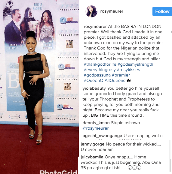 Tonto Dikeh’s husband’s alleged side chick, Rosaline says she was attacked by a man in London