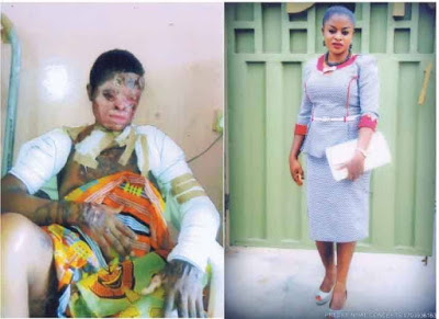 Ogochukwu, who is presently battling to live at the Lagos University Teaching Hospital (LUTH), was bathed with acid at Ilasamaja bus stop, Oshodi- Apapa Expressway, Lagos. The victim was attacked by an unknown man.