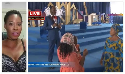 The mother of Stephanie Otobo, was at Apostle Suleman’s church Omega Fire Ministry today, to beg Apostle Johnson Suleman to forgive her daughter. The woman came with Stephanie’s sister.