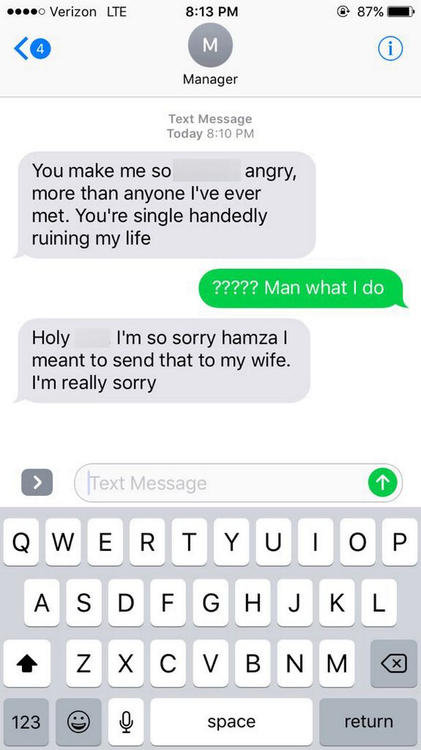 Twitter user Hamza Hendrix shared a screenshot of the text he received from his manager.The text read