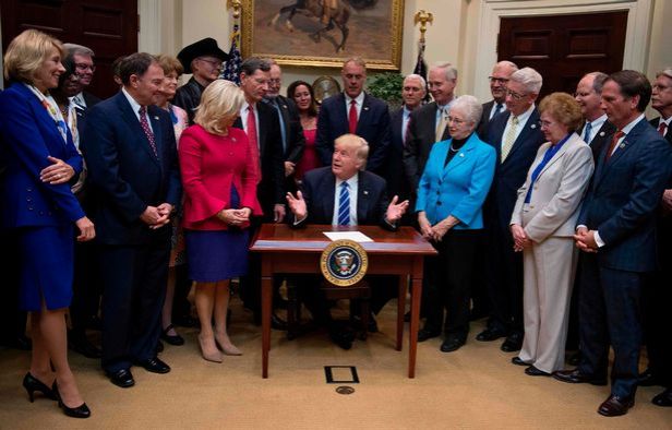 The President joined a ceremony in the White House’s Roosevelt Room, where he was set to add his seal to four new pieces of legislation,Mirror UK reports..
