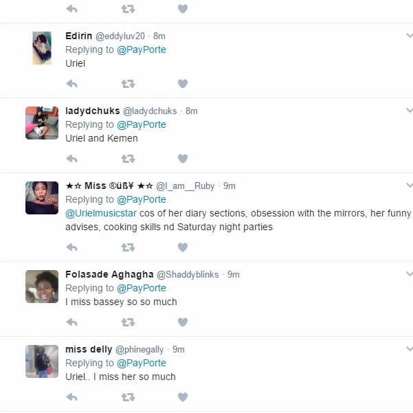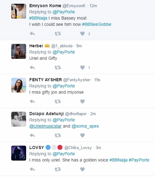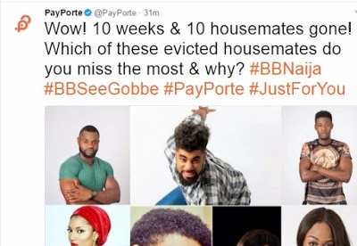 PayPorte, the official sponsor of the controversial TV show, Big Brother Naija threw a question on which of the evicted housemates Nigerians are dearly missing the most and why.