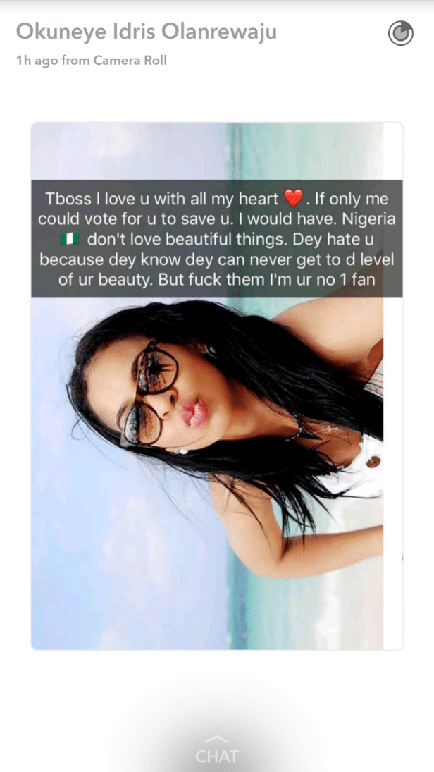Nigerian male barbie, Bobrisky is one of the celebrities showing support for big brother Naija housemate, Tboss. She is up for possible eviction this week and Bobrisky has been begging his fans to vote for her.