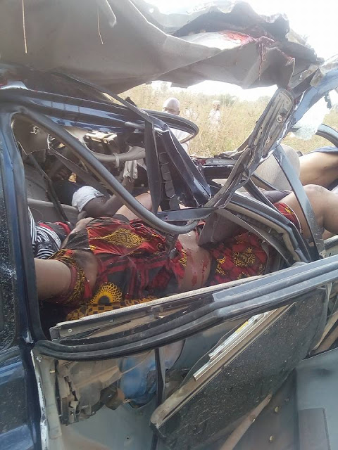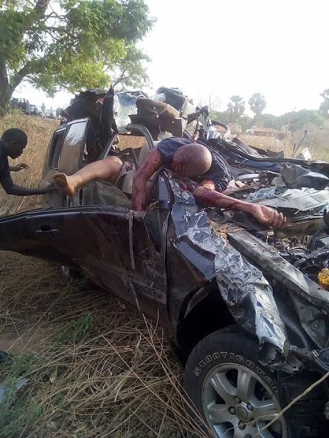 It was a tragic sight to behold after a pick up truck crushed a Toyota Highlander jeep enroute to Abuja into pieces at Jere.