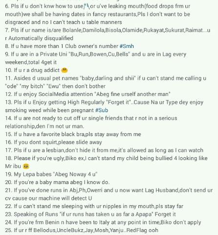 21. If you’ve done runs in Abj,Ph,Owerri and u now want Lag Husband,don’t send ur cv cause our machine will detect U