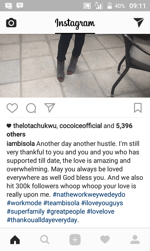 Big Brother Naija first runner up and One Ambassador, Bisola, hit 300k followers on Instagram and was all ‘Thanky’ to her fans.