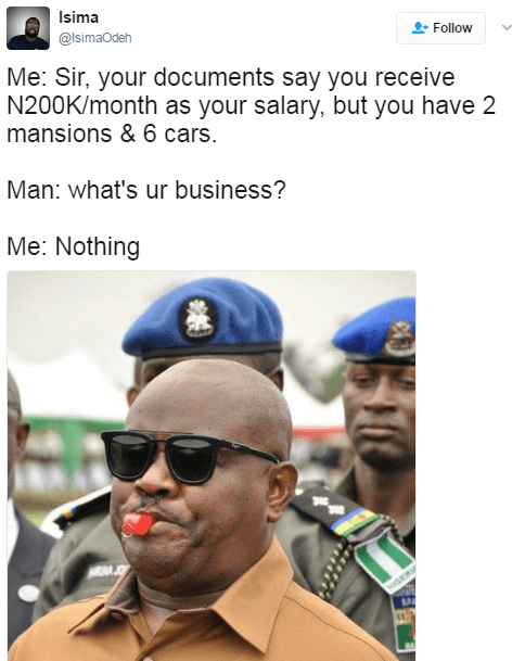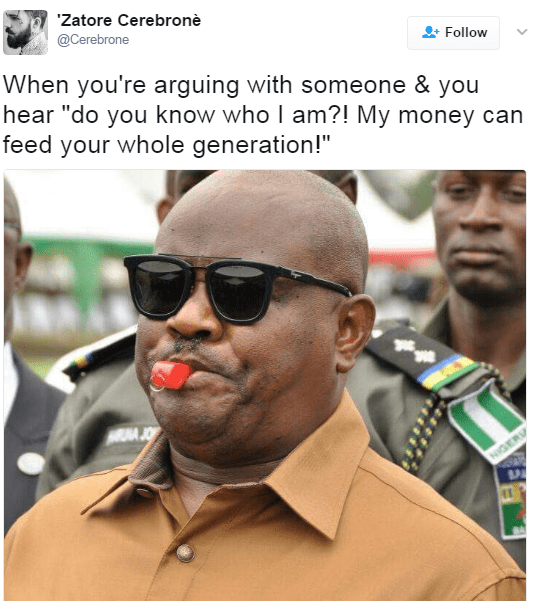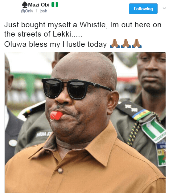 Uncategorized Check out these hilarious whistle blowing memes Date: April 14, 2017Author: daybreaknewonline 0 Comments Trust Twitter Naija to bring out the hilarious side of every situation. So, The above photo of governor Wike of Rivers state is being used as a meme to depict a whistle blower. See after the cut… Share this: Share on X (Opens in new window) X Share on Facebook (Opens in new window) Facebook Share on LinkedIn (Opens in new window) LinkedIn Share on Pinterest (Opens in new window) Pinterest Share on Telegram (Opens in new window) Telegram Share on WhatsApp (Opens in new window) WhatsApp Email a link to a friend (Opens in new window) Email Like Loading... Related